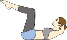 (フローリングにヨガマットを敷くなど安定した場所で行って下さい。背中や腰に痛みを感じるようなら行わないで下さい。)
